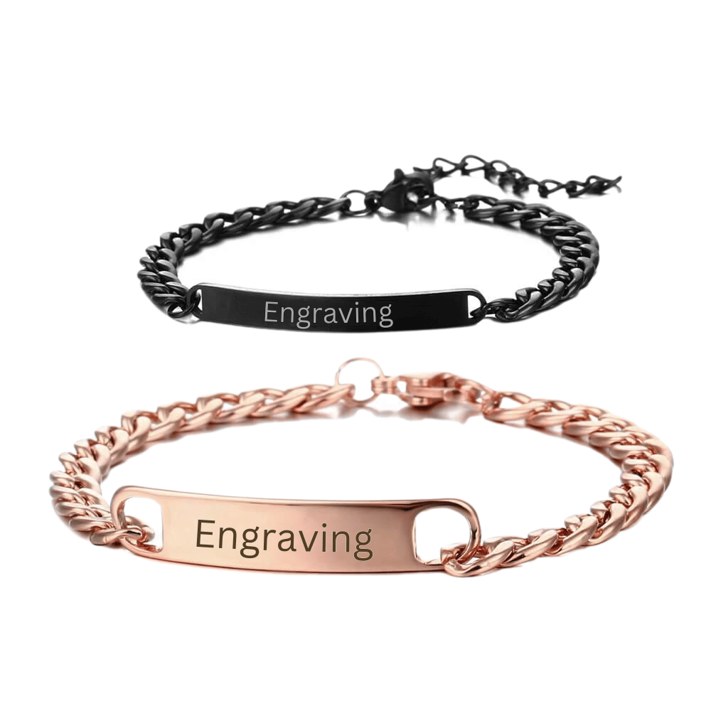 We present our new LOANYA couple bracelet set - two partner bracelets in a stylish, elegant look for you and your loved one. Choose a bracelet for each person in the colour of your choice - rose, gold, silver or black - and decorate both bracelets with your desired engravings. Whatever the occasion - the LOANYA couple's bracelet set is the perfect gift for you and your loved one.